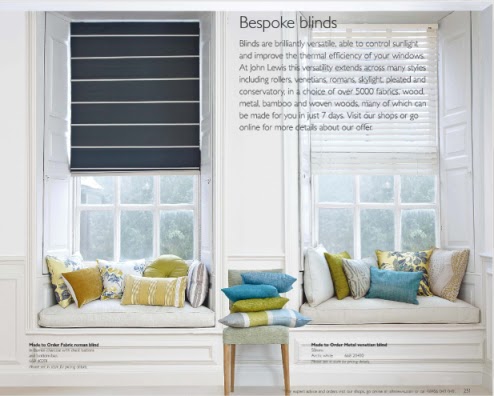 Vorhänge und Gardinen gibt es in mannigfacher Ausführung bezüglich Farbe, Stoff und Aufhängung. Mir gefallen jedoch Rollos weitaus besser, sie geben einem Raum das gewisse Etwas, wie ich finde. Hier seht Ihr ein Beispiel aus dem John Lewis Online-Katalog (Link hier), wobei die Fenstersimse auch gleich mit den farblich passenden Kissen zu einer gemütlichen Sitzgelegenheit umfunktioniert wurden.